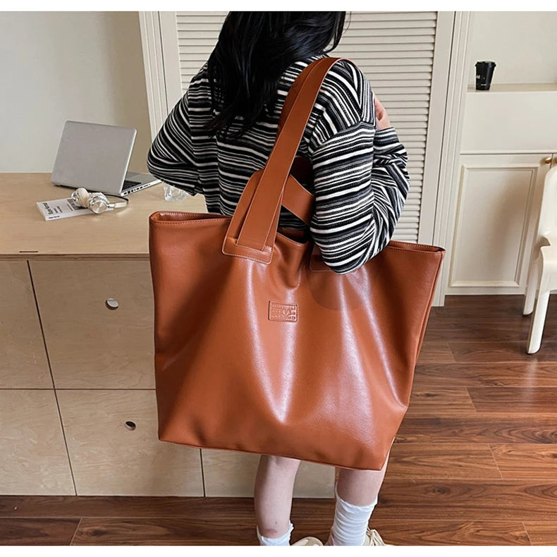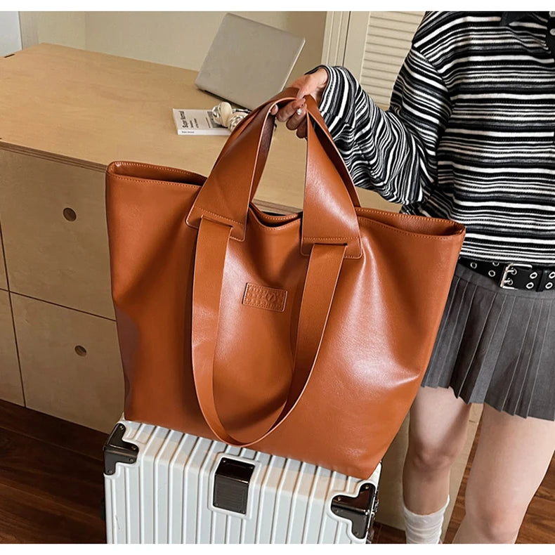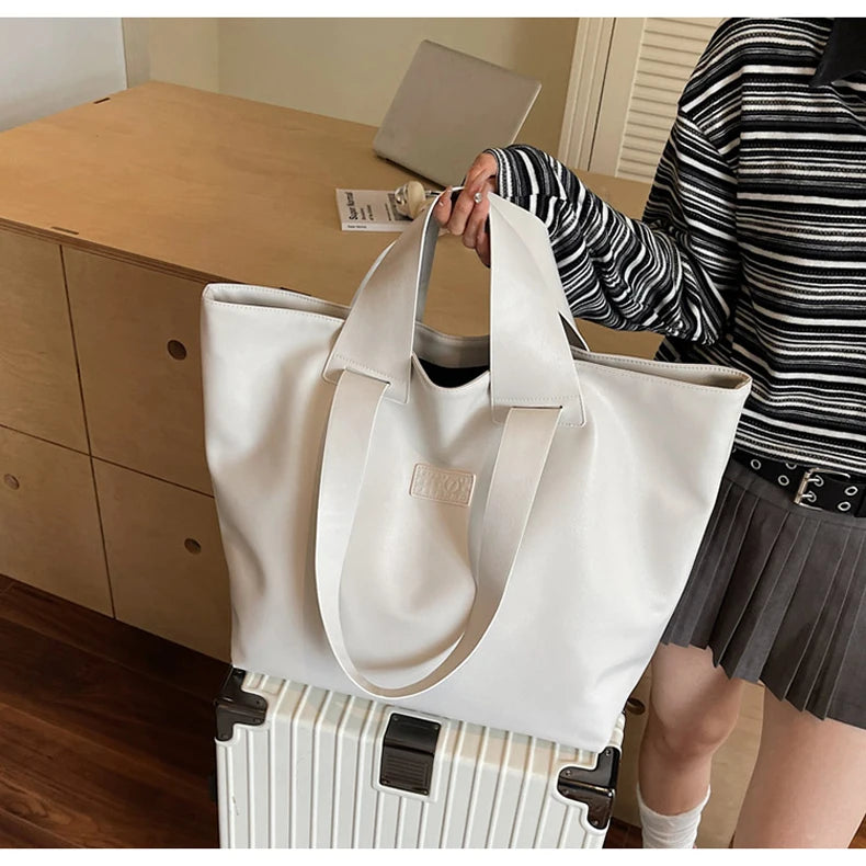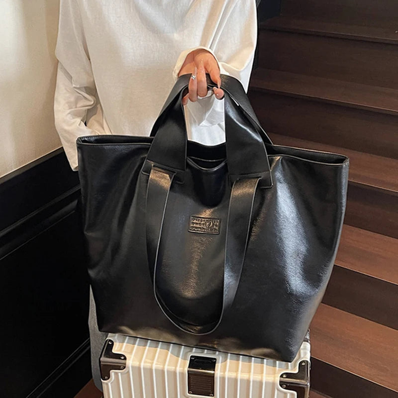 PU Women Tote Bag Large Capacity Outdoor Travel Camping Commuting Shopping Shoulder Bag Business Trip Luggage Female Handbag